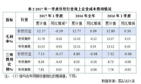 2017年一季度,针织行业规上企业运行态势良好,企业产销流动性提高;内销增长带动行业市场和产品结构调整;行业盈利状态改善,资金使用状态良好,但成本费用继续提升;同时,行业投资加快,特别是针织服装投资的触底反弹,带动行业投资快速增长。