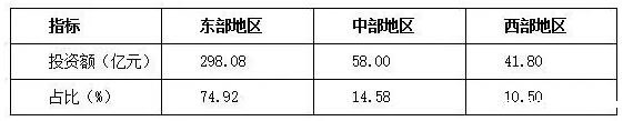 图表3 2017年1-6月各区域新增纺织服装专业市场投资额及占比