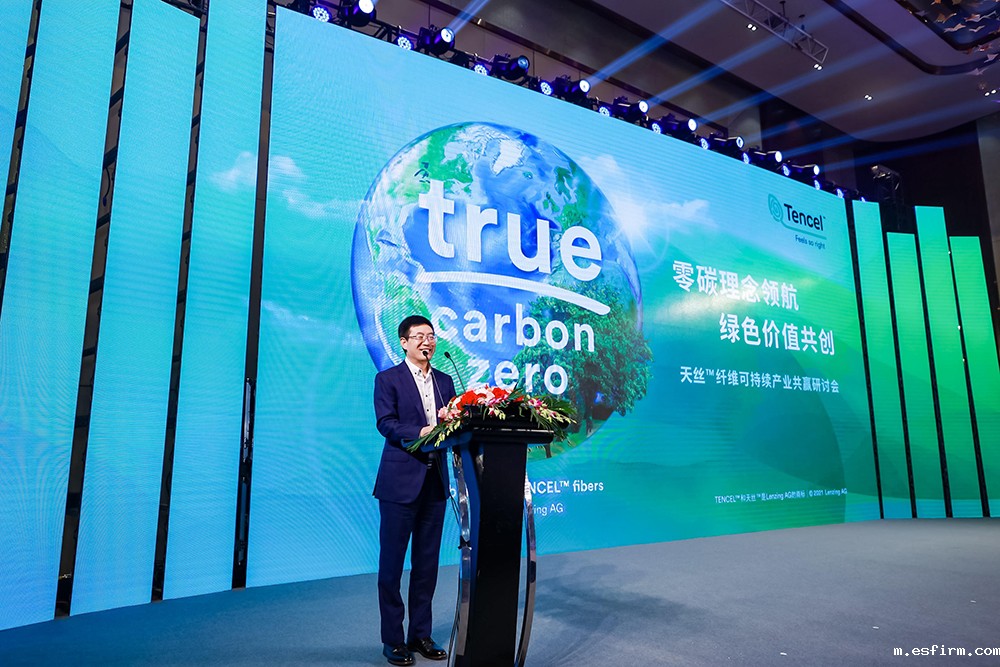 兰精集团全球纺织业务部副总裁Florian Heubrandner以视频连线形式致辞。他表示,当下,气候变化是严峻的全球性问题,兰精作为可持续性和气候保护方面的领军企业,率先推出的零碳莱赛尔纤维TM和零碳天丝TM莫代尔纤维在整个行业中碳足迹较低,比市面上其他通用纤维的碳足迹减少了八成,剩下两成通过经过认证的减排项目进行补偿以达到净零碳。