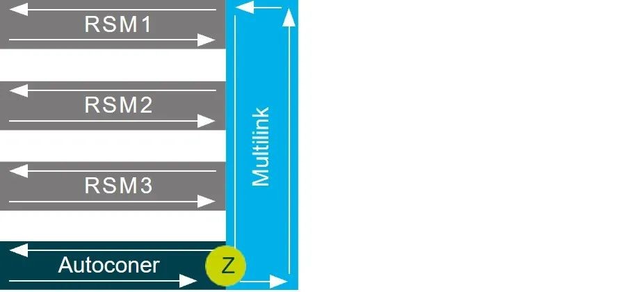通过Multilink最多可将4台细纱机联至一台Autoconer X6络筒机。之前无法实现经济性自动化的纱厂,这种方式可使之成为可能,例如用于空间狭小或受限的场地,以老车间设备改造为典型情况。如果客户的纺纱厂内空间非常局促,现在也能做出合适的布局。