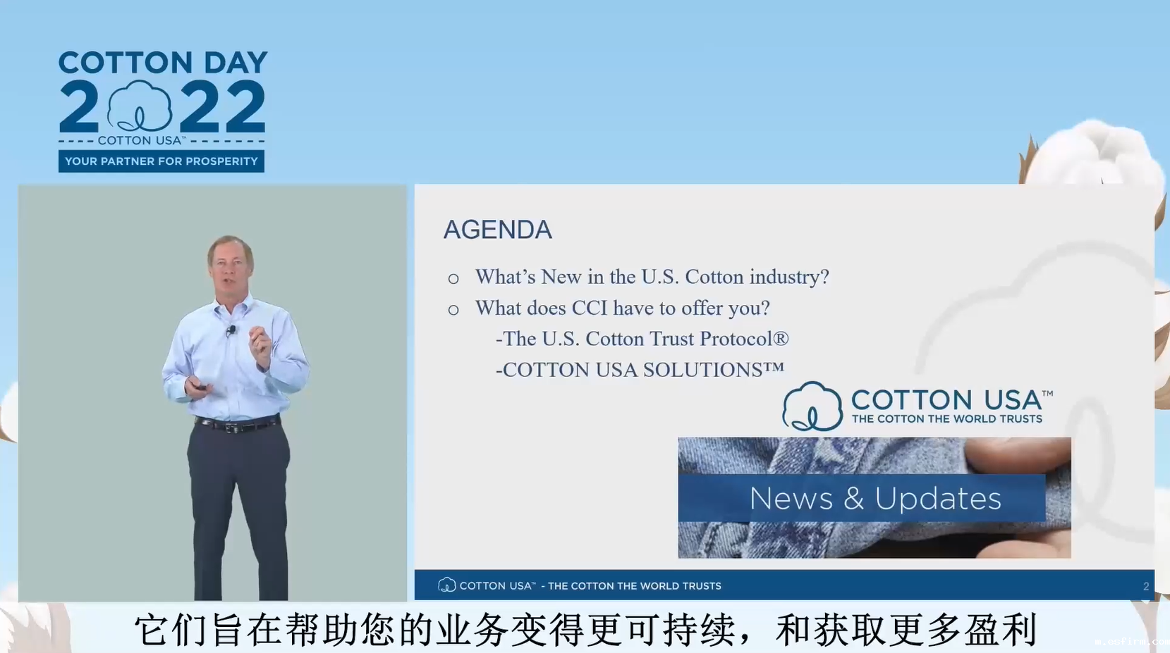 本次COTTON DAY 2022 CHINA线上活动全方位呈现了美国棉业为促进整体棉花行业可持续发展所做出的不懈努力和持续探索。美国棉业期待与在中国的伙伴建立更加紧密的合作关系,推动可持续棉花的持续改进,共同开创共赢新局面。