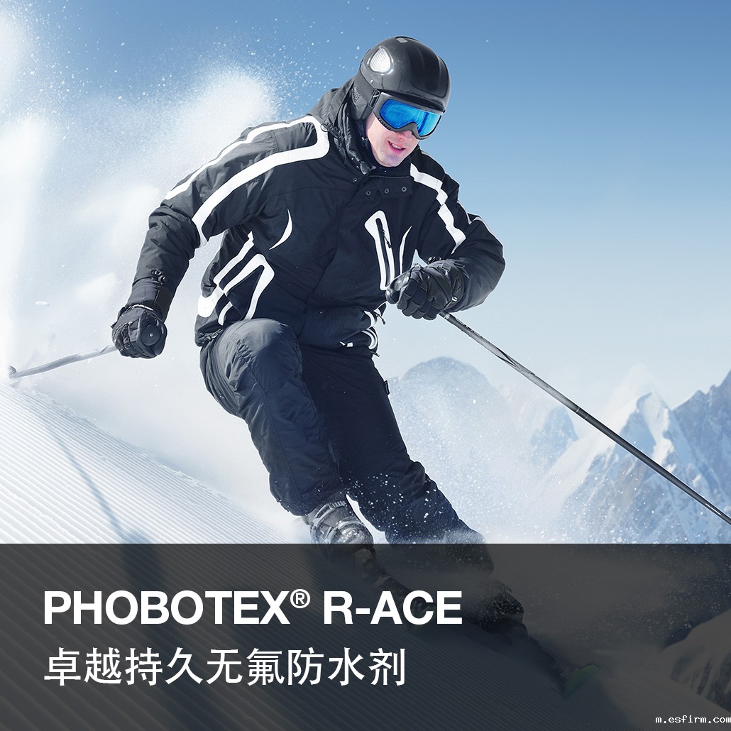 PHOBOTEX® R-ACE可赋予各种纤维类型的织物优异的防水性能。同时,PHOBOTEX® R-ACE与抗皱树脂的配伍性能良好,从而赋予纤维素纤维纺织品多合一的功能。即使在恶劣的环境下,PHOBOTEX® R-ACE也能为防风雨的服装提供出色的防雨和防泼溅保护。此外,其还能保护服装免受泥浆、咖啡、番茄酱和果汁等日常污渍污染,让服装更长时间保持整洁。经过PHOBOTEX® R-ACE处理的纺织品透气性好,即使在多次洗涤和干燥处理后仍能保持柔软的手感、良好的外观和突出的防水性能。
