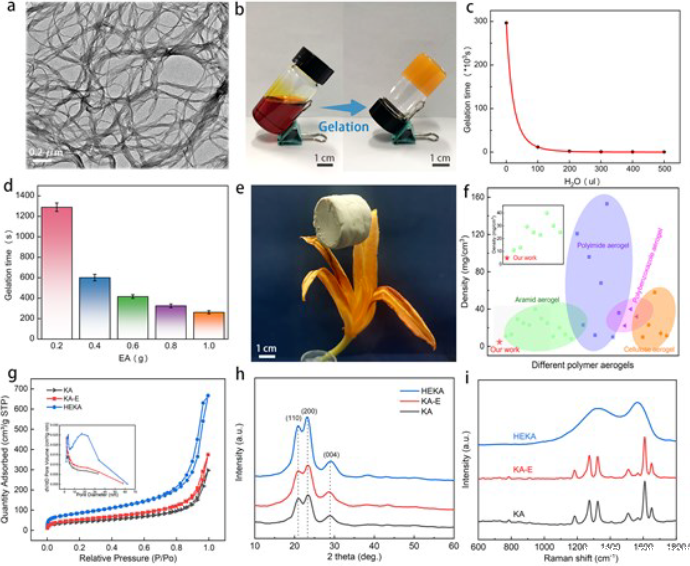 近日,东南大学和中科院苏州纳米所研究采用慢质子释放-调制凝胶化和热诱导交联策略,设计并制备了一种超弹芳纶纳米纤维气凝胶(HEKAs)。