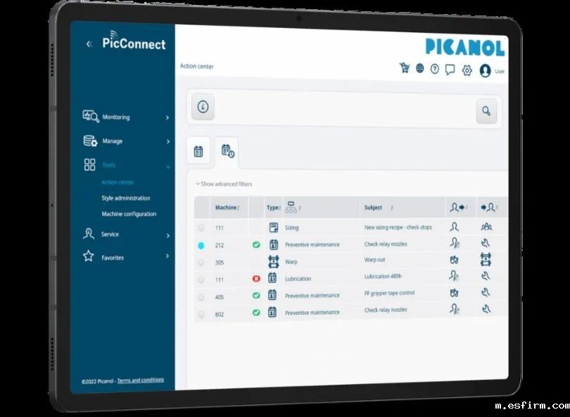在通过智能转型推动制造强国建设新时期,实现“数字化、网络化、智能化”制造成为纺织装备制造业发展的新趋势。同时,随着劳动力成本的持续增加和用户对品质要求的逐步提升,纺织企业对织造设备的自动化、智能化水平需求也越来越迫切。从本届展会的展出情况来看,多家企业都在积极利用各种电子控制平台提供设备的远程监控和服务,同时通过数字的积累与云平台的建设与应用,为智能化运行打下基础。例如,必佳乐将旗下数字化工具和数字化服务集中在全新的数字化平台PicConnect中,该平台集生产监控、能耗监控、品种管理、网上商城等功能于一体,能使工人快速改变织机的参数设定,实时监控织机状态并跟踪生产,关注织机能耗,同时新增了报警、访问控制、行动中心和监控数据导出等功能;意达最先进的工厂监控系统My-Weave™,可以提供纺织品生产管理参数;所有的范德威尔机器都可以通过云计算连接到“TEXconnect”监控系统,更符合“工业4.0”概念;多尼尔配备的DoXNet软件,可以将织机网络化,并提供用户友好的生产概览,通过多尼尔DoXWeave控制台,可以集中管理织机数据,并远程访问网络化织机;TISS津田驹网络支援系统,用于物联网应用,可实现改善运转、提高生产、预测保养的目的;约科布·缪勒所有窄幅织物织造机和标签织机(MD 2/130除外)均经过预先配置,可集成到网络中,并可通过窄幅纺织行业的数字化门户“mymuenet®”进行连接,这些机器还标配了MLC机器控制系统和MÜDATA®M系列控制平台。