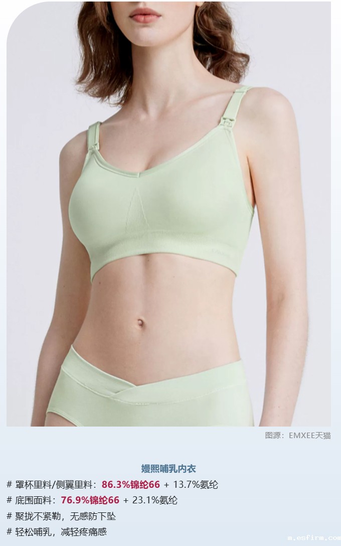 哺乳期生理变化带来的疼痛不再是羞于启齿的话题。嫚熙切入细分场景下的使用痛点,打造出了经典款哺乳内衣,迄今为止已连续6年蝉联天猫平台哺乳文胸类销量榜首,2016年1月—2023年5月间累计销售额985万元。