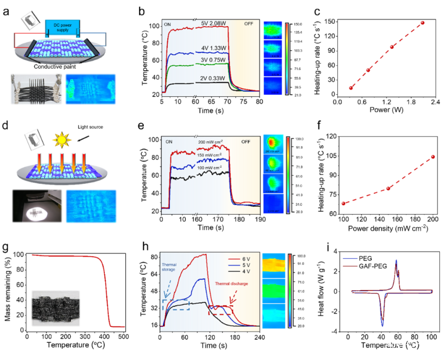 石墨烯气凝胶纤维织物兼具了石墨烯优异的传导电热性质、光热和导热性质,在热管理和防护领域展现出巨大优势。通过施加远低于人体安全的电压,即可改变织物的表面温度;通过外界阳光照射,可以调节织物的表面温度;通过复合相变材料,结合石墨烯的电热性能,可以有效存储和释放能量。