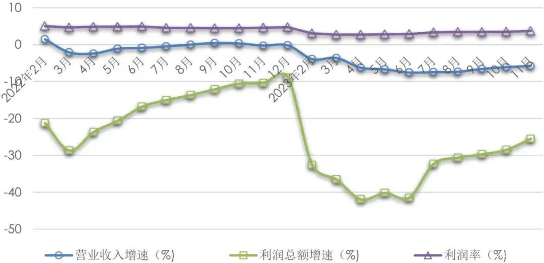 2023年1-11月产业用纺织品行业主要经济指标增速