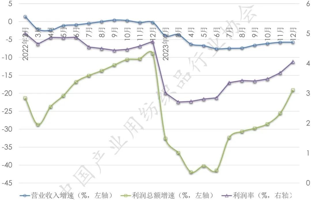 2023年1-12月产业用纺织品行业主要经济指标增速
