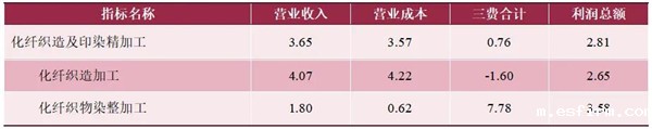 表1 2023年我国化纤织造及印染精加工业主要经济指标同比增减情况