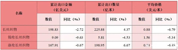 中国海关数据显示,2023年,我国化纤长丝织物累计进口9.3亿美元,同比下降14.9%;累计进口数量为3.7亿米,同比下降11.9%;进口平均价格为2.3美元/米,同比下降3.5%。