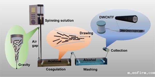 干喷湿纺制备高性能碳纳米管纤维的过程示意图