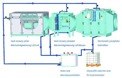 布鲁克纳在环境和能源技术领域的产品组合多样且广泛。用于热回收和废气净化的各种装置既可以单独使用,也可以作为一个完全集成的系统使用。得益于其模块化设计,这些系统在单独使用时可适应客户的各类需求。根据工艺的不同,可以灵活地打开或关闭单个单元。新开发的自动清洁系统可获得更好的节能效果,显著降低维护和人员成本,延长过滤器模块的使用寿命,并始终保持良好的过滤分离性能。清洁程序可以自由设置,清洁的时间间隔也能够单独控制,因此不会中断生产。