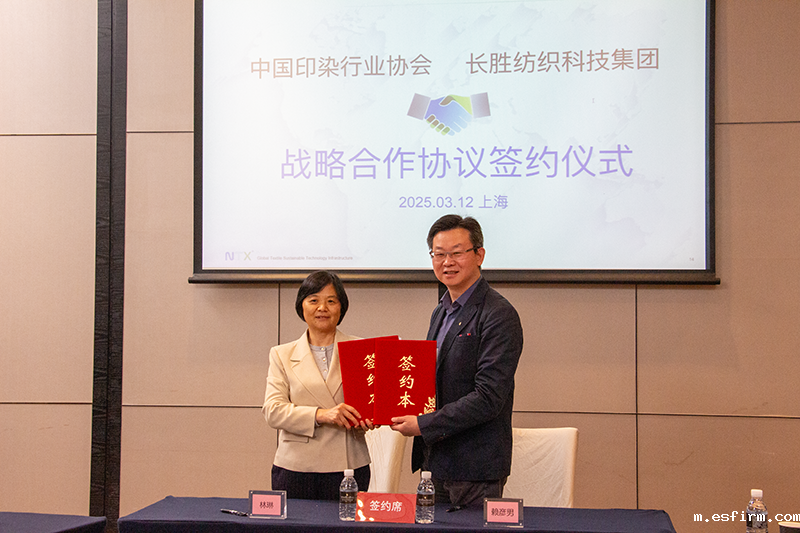 3月12日上午,在中国国际纺织面料及辅料博览会期间,中国印染行业协会与长胜纺织科技发展(上海)有限公司,于上海共同签署战略合作协议,旨在携手长胜纺织科技推广绿色印染工艺技术设备的应用,推动中国纺织行业的技术创新和绿色发展。