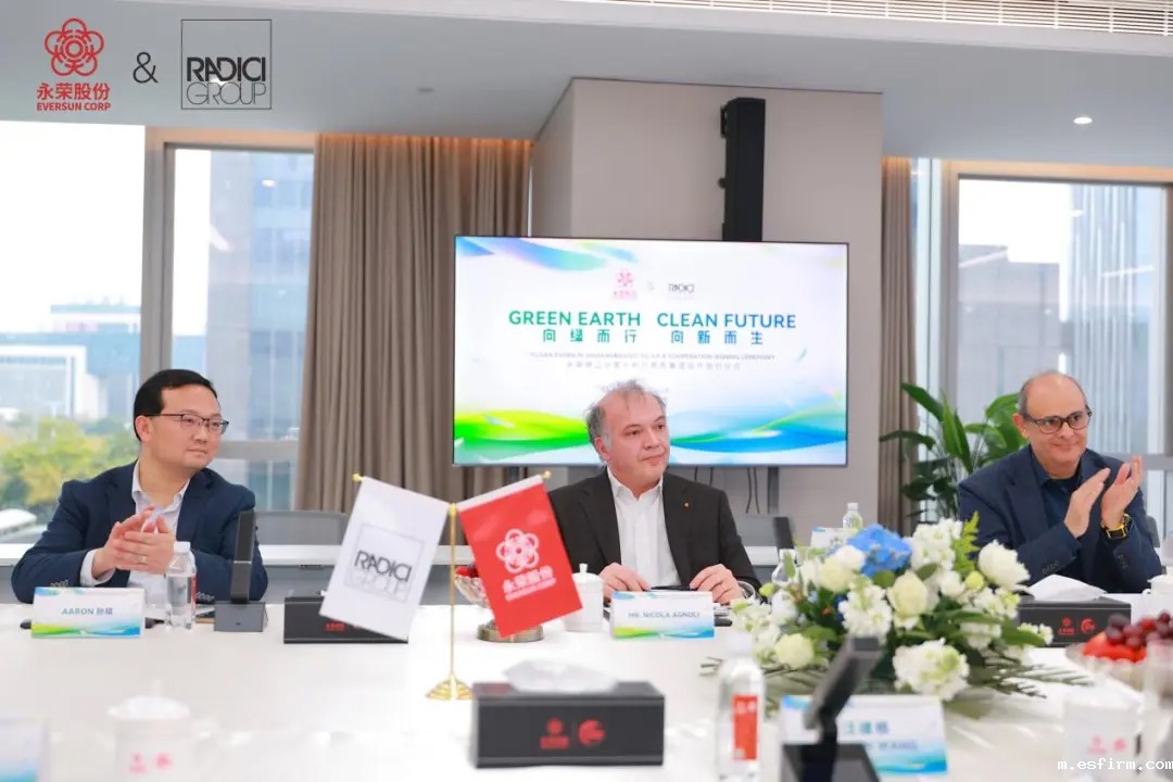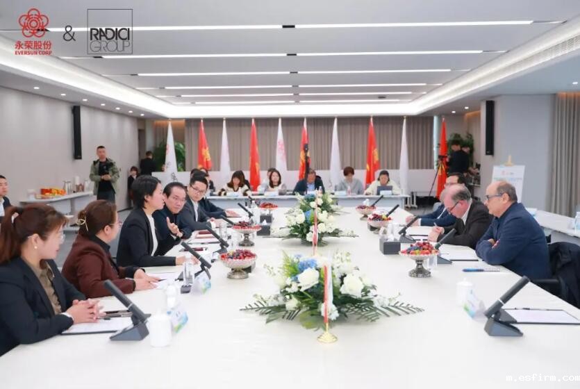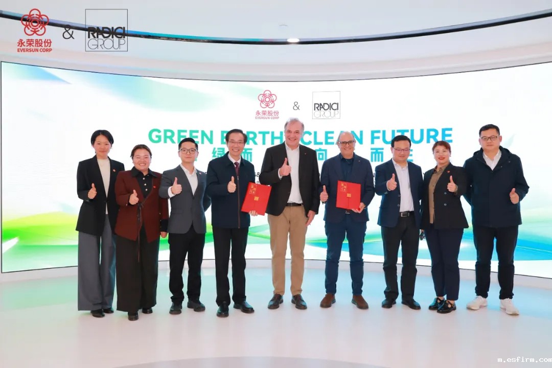 3月13日,福建永荣锦江股份有限公司与意大利兰蒂奇集团(RADICI GROUP)迎来了具有里程碑意义的时刻,双方就消费后再生领域的长期战略合作举行了签约仪式。本次活动以“向‘绿’而行,向‘新’而生”为共同信念,依托兰蒂奇集团全球领先的高性能聚合物技术,永荣锦江将实现E-SUNLON®爱赛纶消费后再生纤维从研发到市场应用的完整闭环,推动企业绿色化战略落地,携手抢占全球循环经济的产业制高点。
