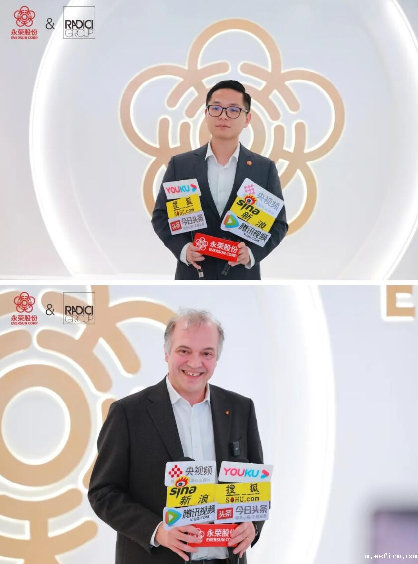 活动结束后,永荣股份销售副总吴梦、兰蒂奇工业总经理Nicola Agnol、兰蒂奇纺织总经理Bernardo Staiano接受媒体采访。