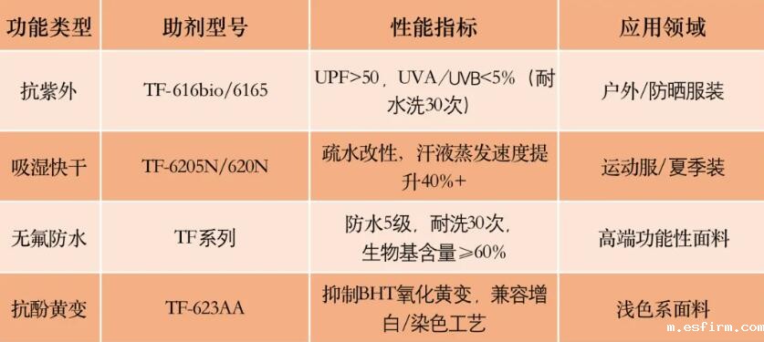 ①基础物性提升:手感调节(柔软/挺括);防护性能(防水/抗菌);