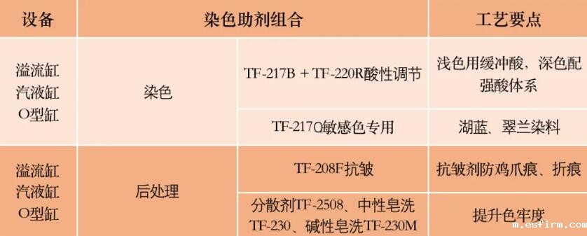 ②功能整合技术:环保固色剂保障色牢度;缸内同步实现抗紫外/吸湿/防酚黄功能
