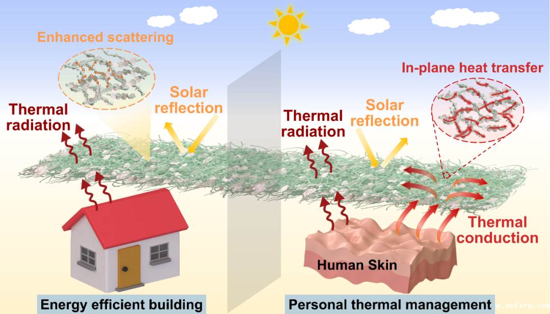 全球气候变暖不断加剧,极端高温天气频繁出现,对人类生活构成了严重威胁。传统的降温技术由于能耗过高,且在户外环境中适应性不足,难以满足个人热管理需求。目前,虽然辐射冷却织物能够通过反射太阳辐射以及大气窗口向外太空发射热辐射来实现无源降温,但在实际应用中,往往忽视了热传导对最终冷却效果的影响。因此,如何设计并制备兼具传导冷却和被动辐射冷却的新型冷却织物,仍是当前面临的一大挑战。