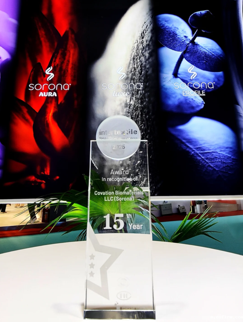 值得注意的是,SORONA®与Intertextile面辅料展相伴同行也已有15年之久。为了表达对SORONA®15年来坚定选择Intertextile以及在推动全球纺织行业可持续转型升级方面作出的杰出贡献,展会期间,主办方还专程组团到访SORONA®展位,并在晚宴上为SORONA®颁发了表彰奖杯,用实际行动表达了对SORONA®的感谢以及行业的高度认可。而这,不仅为SORONA®的2025 Intertextile秋冬面辅料展之行带来了惊喜,也为SORONA®携手生态伙伴们奔赴新征程提供了更多信心与动力——即使百舸争流、千帆竞渡,SORONA®走出的每一步,都将被看到、被认可!