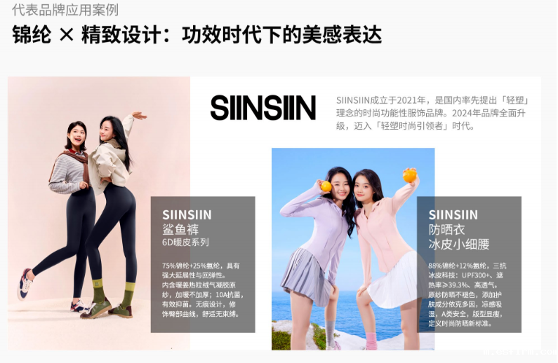她表示,新消费时代下,功能材料正成为服装行业革新的引擎,在基础的防护功能之上,舒适性、轻量化、机能性、轻奢感等特点契合消费者的穿戴需求,适配潮趣户外、精致悦己、健身塑性等多个消费场景,为锦纶面料赋予更大的市场应用空间。